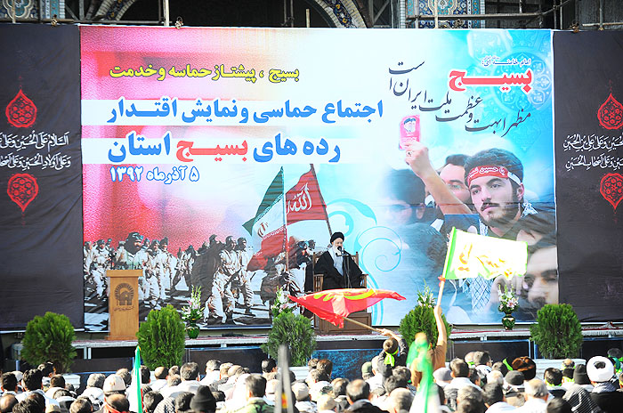 برادران آنچه دشمن را یک ربع قرن اطراف ما نگهداشته که جرات نزدیک شدن به ما ندارد قدرت بسیج است، آنچه در مقابل تهاجم فرهنگی و اقتصادی دشمن می ایستد شما مردم بسیجی هستید و وجود بسیج در این عرصه ها دشمن را شکست خورده قرار داده و تنها راهش قدرت تزویر است.