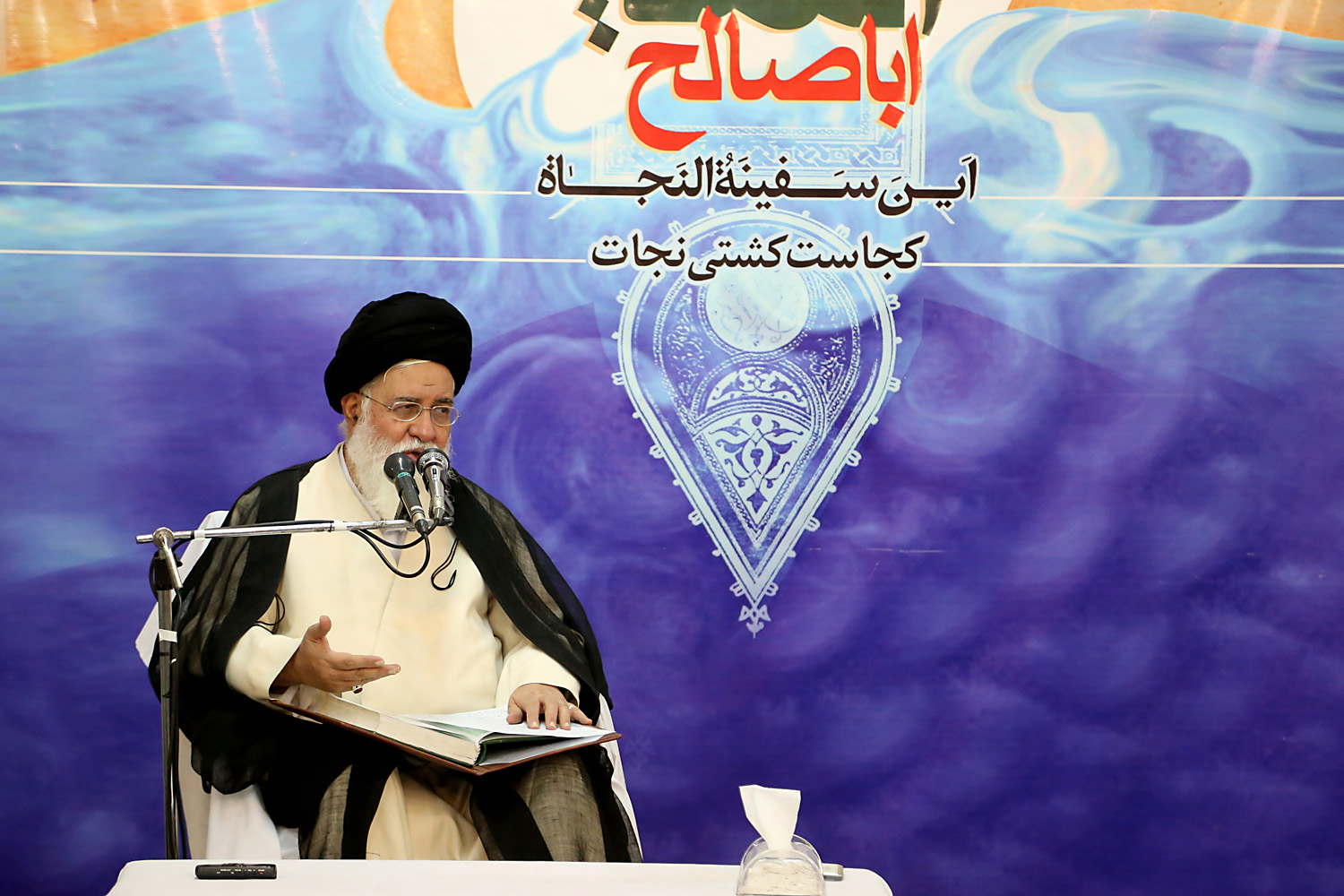 آیت الله علم الهدی افزودند: اینجا وظیفه پیغمبر(ص) به دو شکل است ابتدا عبودیت خدا که باید به شایسته ترین شکل باشد. این که در تشهد نماز شهادت می دهیم پیامبر(ص) عبد خدا است، این گواه بر این موضوع است. عبودیت پیغمبر(ص) متناسب با ربوبیت خدا است. غیر رسول الله (ص) همه در صراط بندگی خدا هستند و البته علی(ع) و ائمه همه نفس پیغمبر(ص) هستند.
