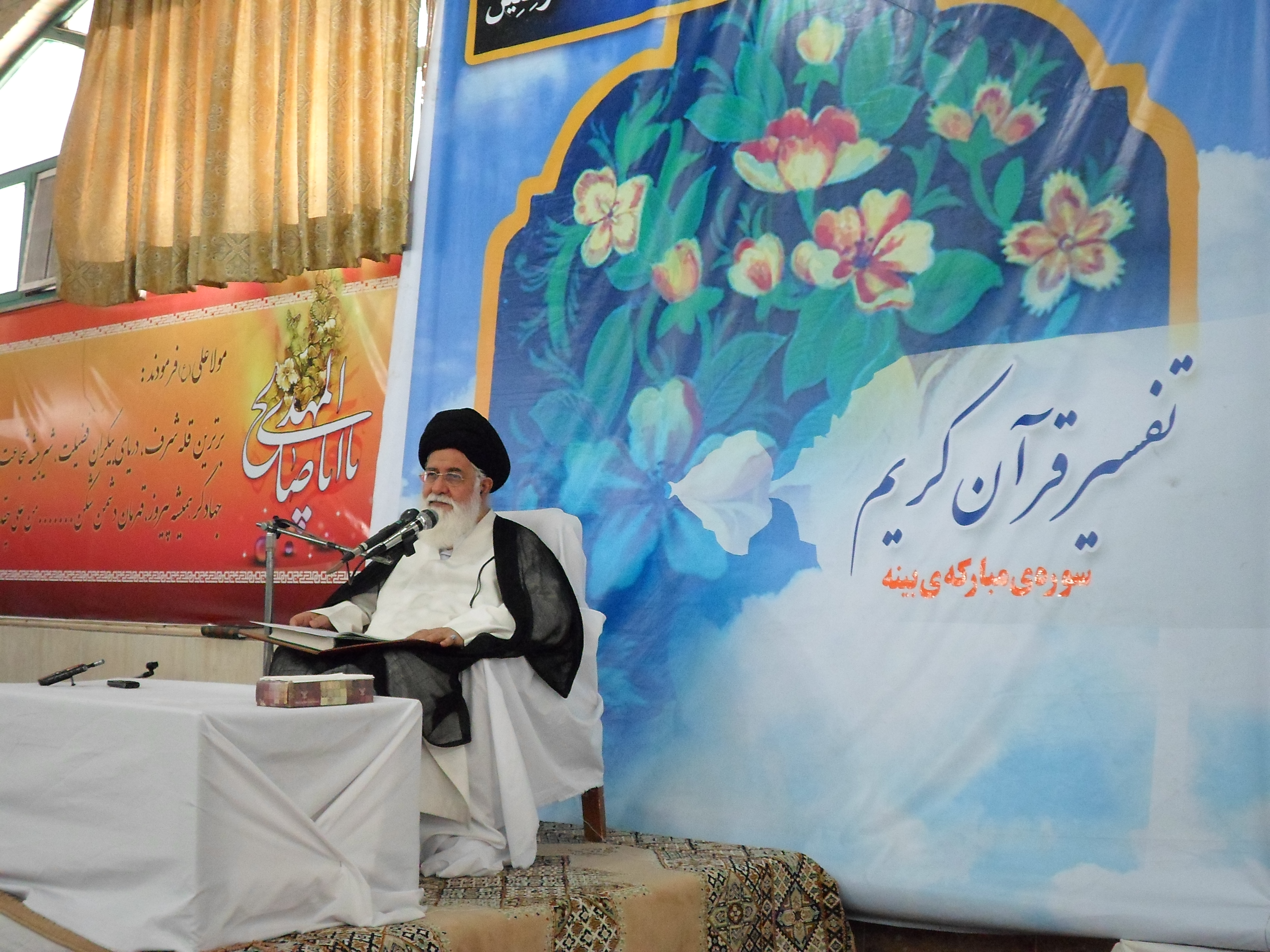 آیت الله علم الهدی در تفسیر آیه "وما امروا الا لیعبدوا الله..." به این مطلب اشاره کردند که خداوند میفرمایند: وامر نشدند مگر به اینکه خدا را به اخلاص کامل در دین پرستش کنند نماز را بپا داشته و زکات بدهند.اینست دین درست.