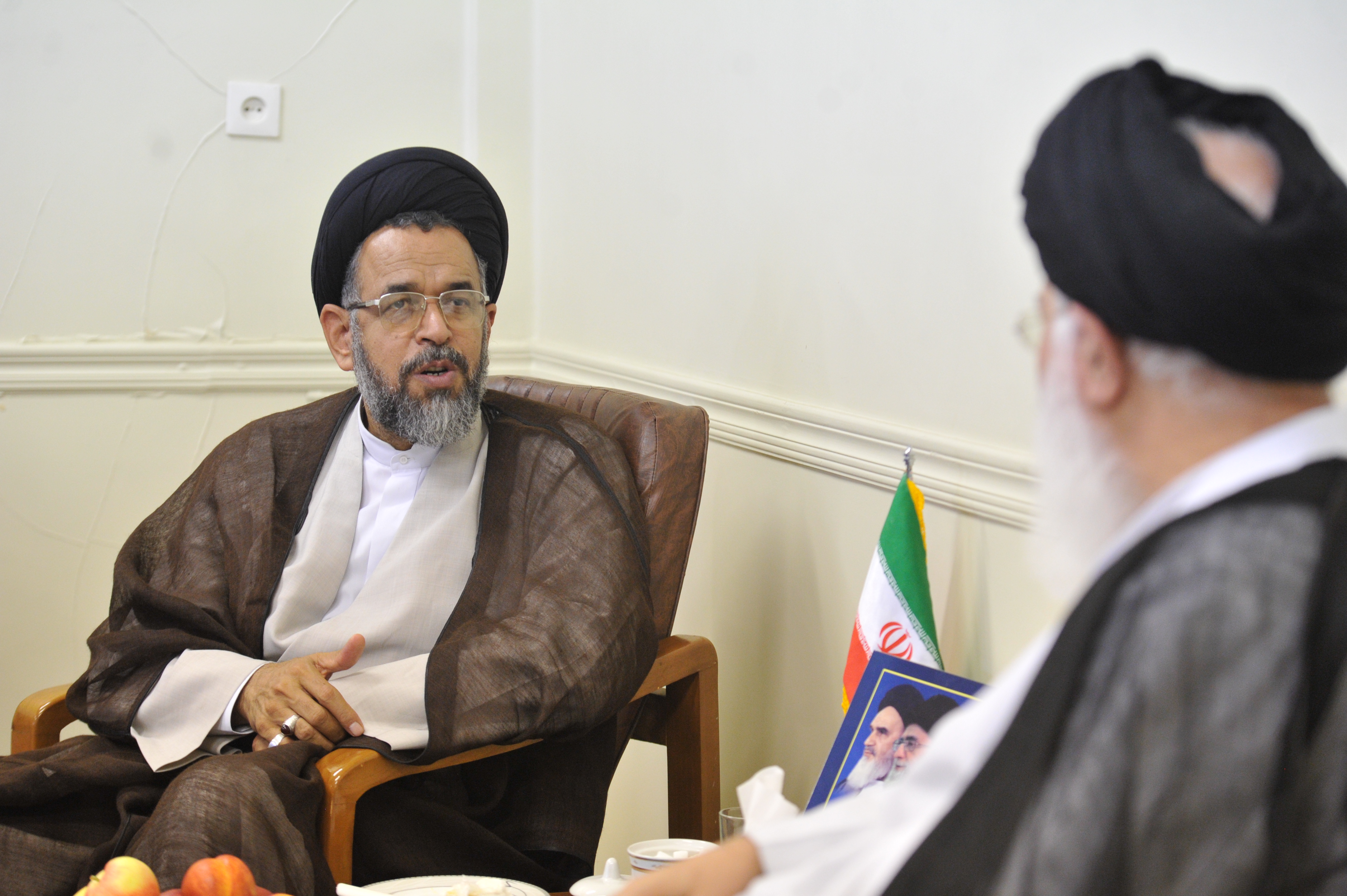 در این دیدار که امروز عصر برگزار شد وزیر اطلاعات ضمن ارائه ی گزارشی از روند پذیرش این مسئولیت خطیر بیان داشت که در این مسئولیت نیازمند کمک نخبگان مذهبی و سیاسی است. ایشان در بخش دیگری از سخنان خود با اشاره به ویژگی های کار امنیتی اظهار داشت : همانطور که مقام معظم رهبری فرمودند مجاهدت بچه های اطلاعات مجاهدت خاموش است.